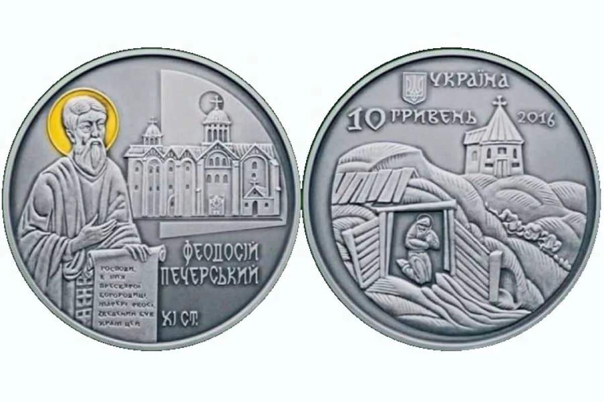Монета номіналом 10 гривень вийшла у серії “Духовні скарби України” та присвячена одному із засновників Києво-Печерської лаври та її ігумену Феодосію Печерському (р. н. невідомий – 1074). Монету виготовлено з використанням технології патинування.