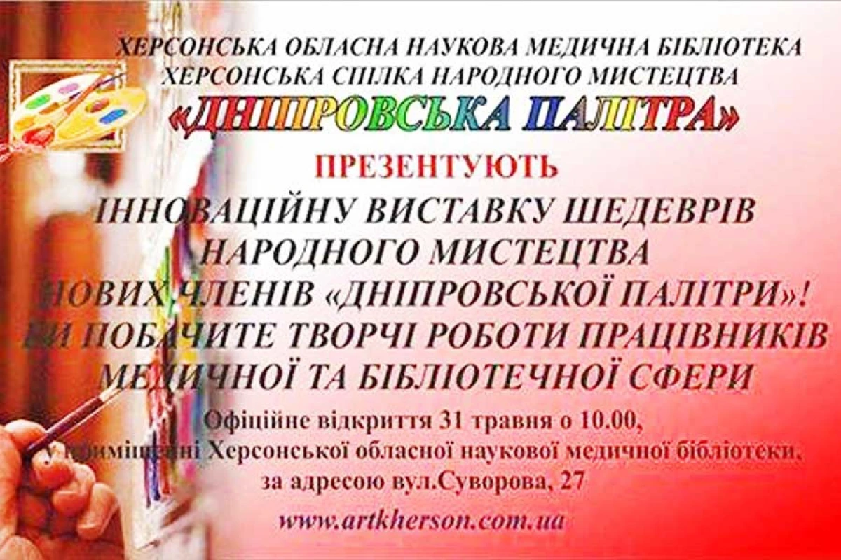 Херсонская областная научная медицинская библиотека и Херсонский союз народного искусства “Днепровская палитра” представляют инновационную выставку шедевров народного искусства новых членов “Днепровская палитра”.