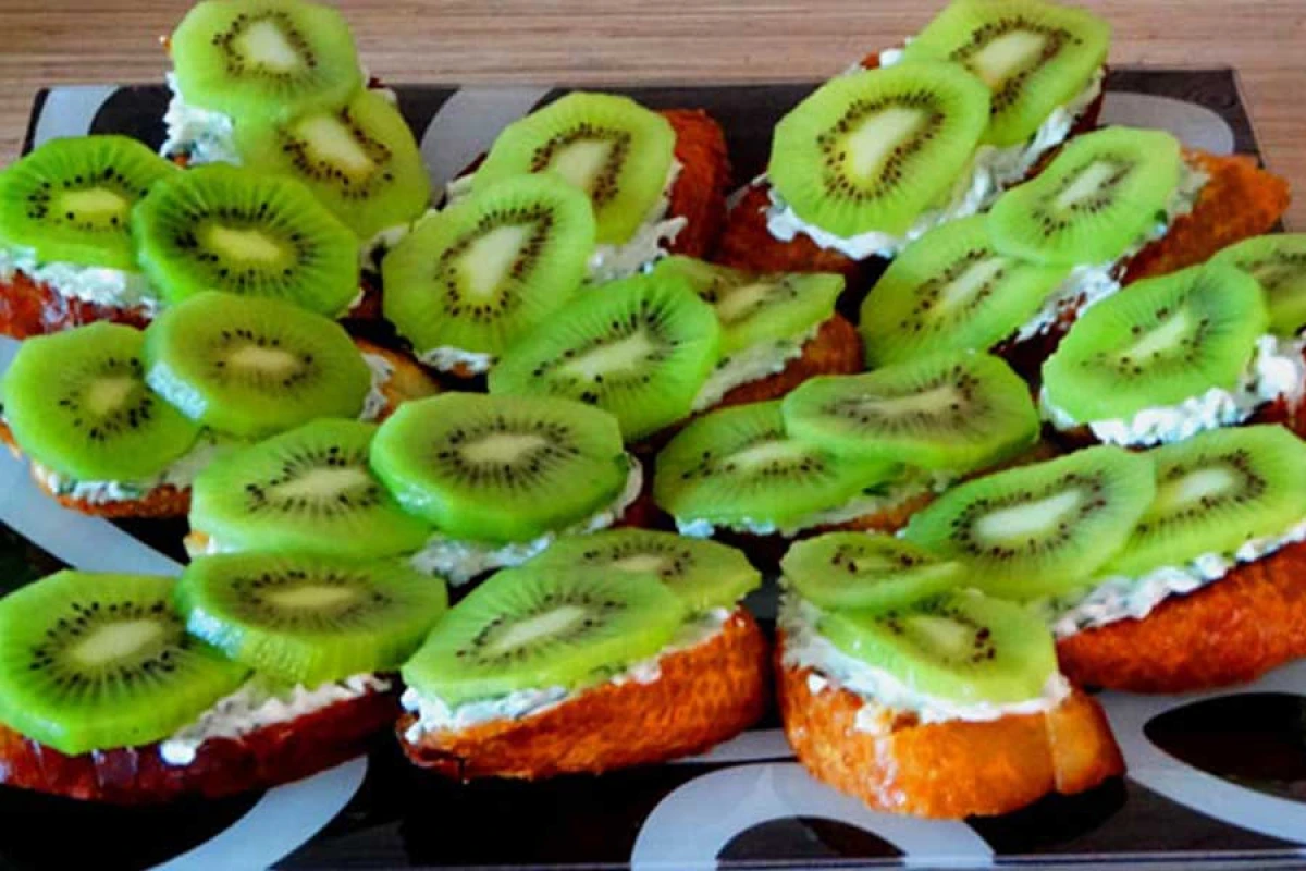Намазываем тостики соусом. Аккуратно укладываем киви сверху. Всё, готово!