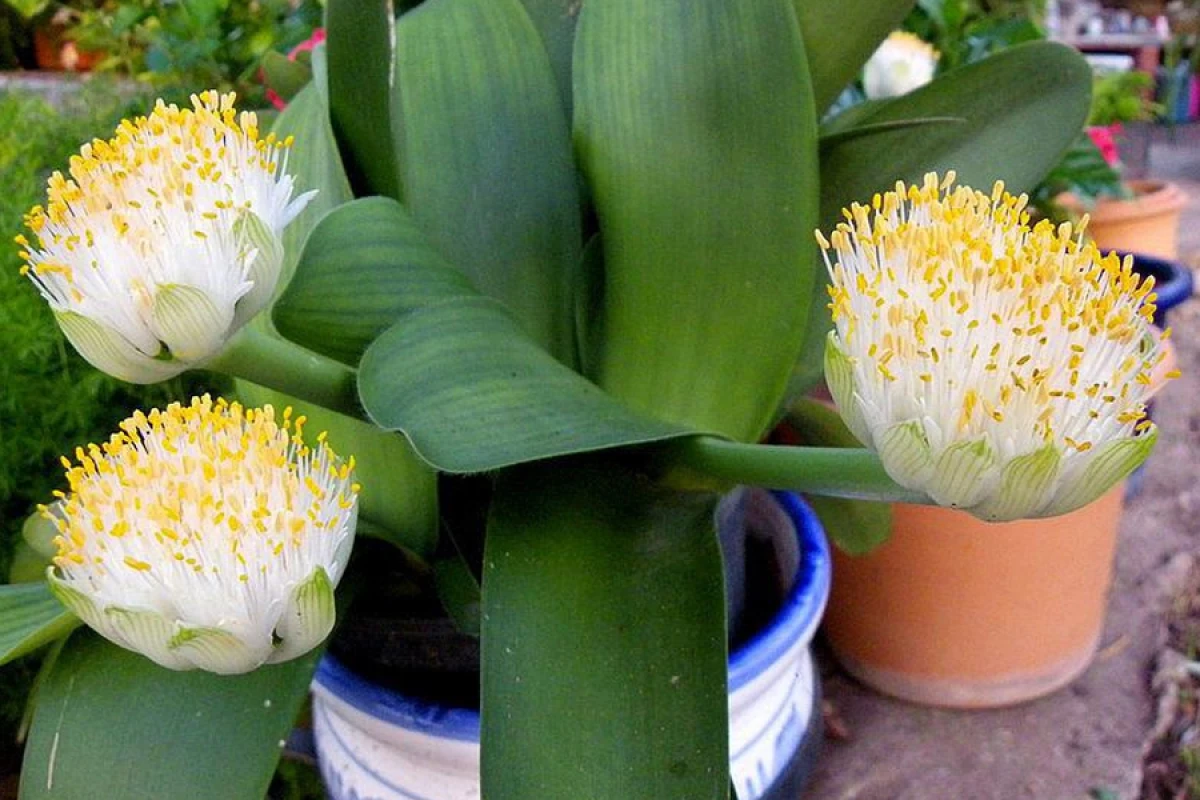 – Гемантус – невибагливий. Наприклад, вологість повітря для нього ролі не грає. Він добре почувається в сухому повітрі, не боїться протягів. Навпаки любить часті провітрювання. Єдине: важко переносить ушкодження коріння. Перестає цвісти. Тому пересаджувати потрібно обережно, – каже Катерина Поліщук. – Усю цибулеподібну частину стебла слід залишити над поверхнею землі. Для гемантусів краще підібрати широкі, але неглибокі горщики.