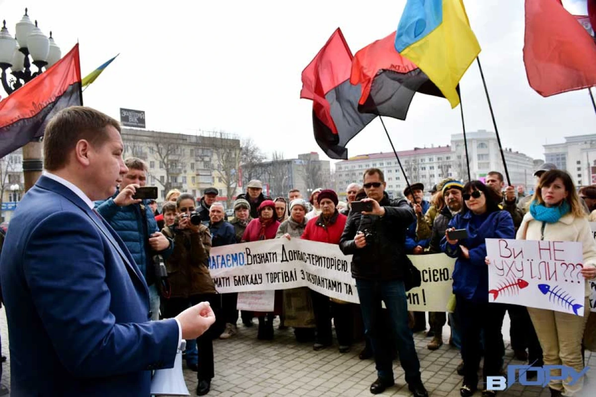 Андрій Гордєєв намагався переконати протестували, що питання, пов’язані з економічною блокадою Донбасу, – не в компетенції Херсонської ОДА.
