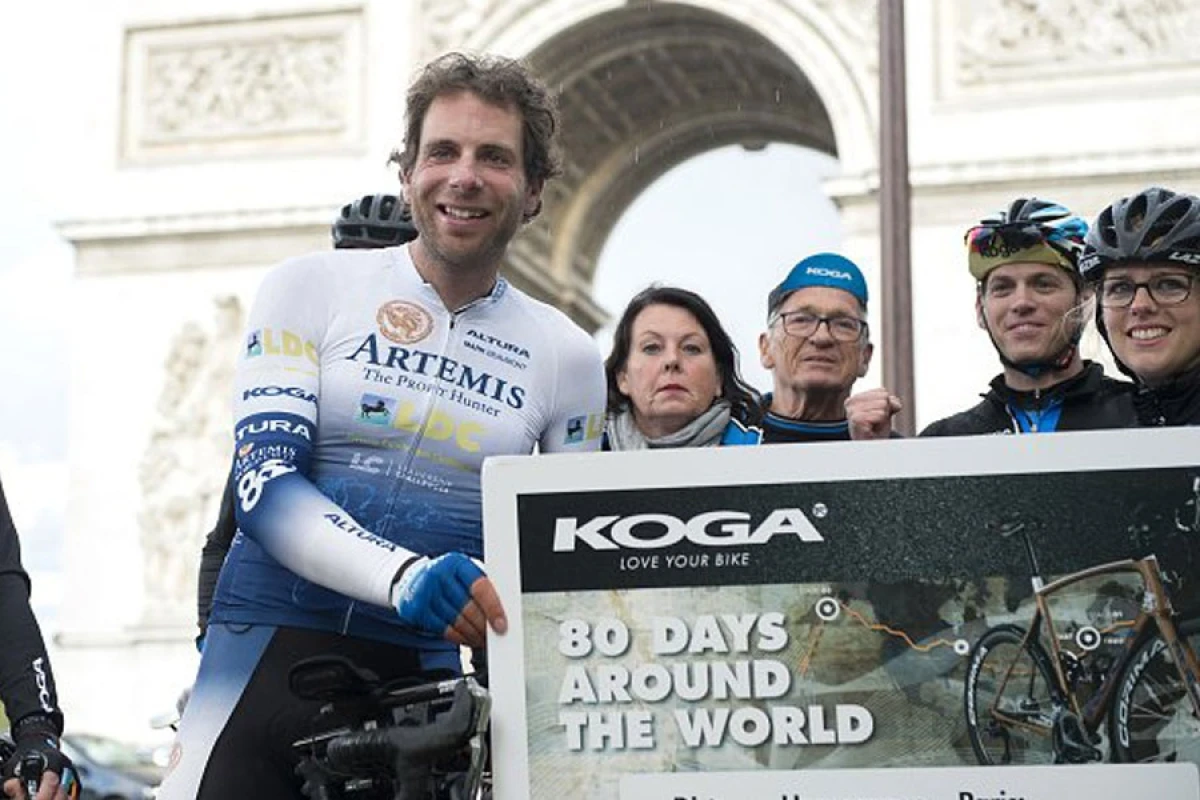 Велосипедист розпочав подорож 2 липня з Парижа. Він проїздив через Європу, Монголію та Китай. Звідти долетів до Австралії і знову сів на велосипед. Протягом поїздки чоловік побував у 16 країнах і проїхав 30 тис км. З ним завжди були поряд механік, дієтолог, лікар і менеджер. На днях він повернувся до Парижа. Біля Тріумфальної арки його зустріли дружина та доньки.