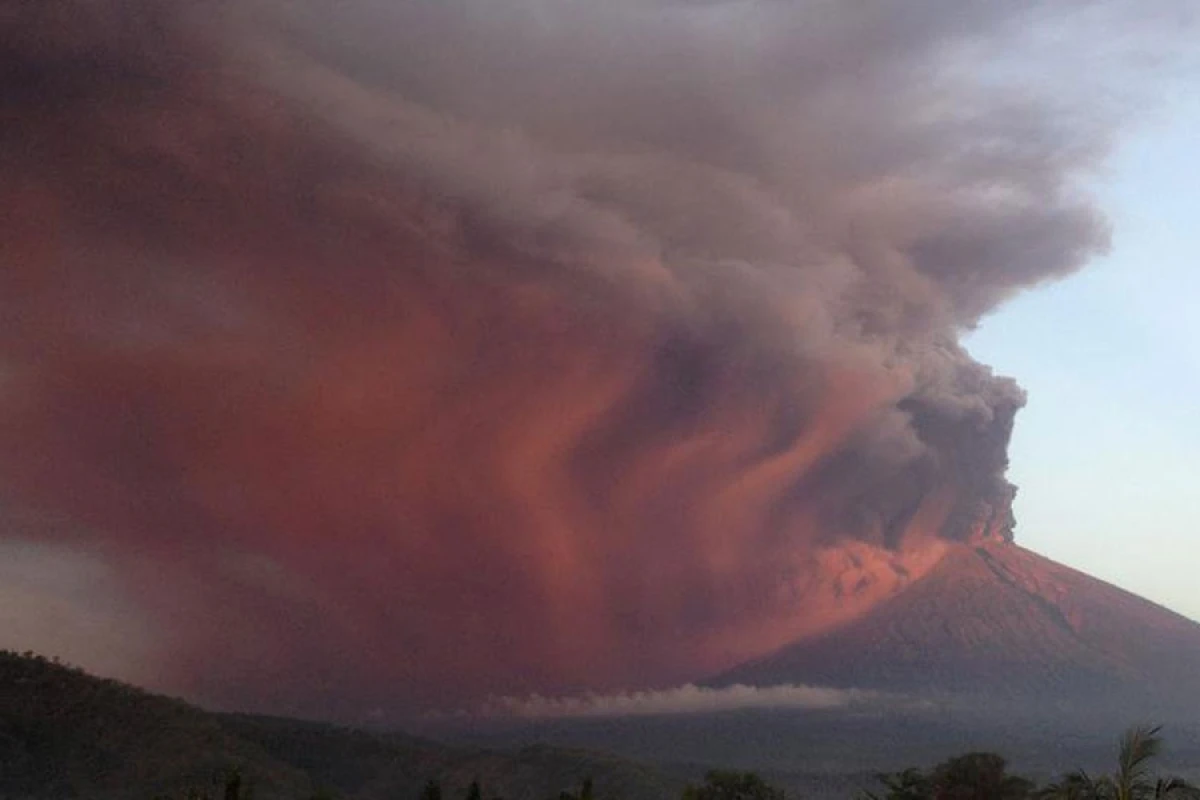 Вулкан Агунг на індонезійському острові Балі викинув стовп диму та попелу близько 3 км заввишки у ніч на неділю, 26 листопада.