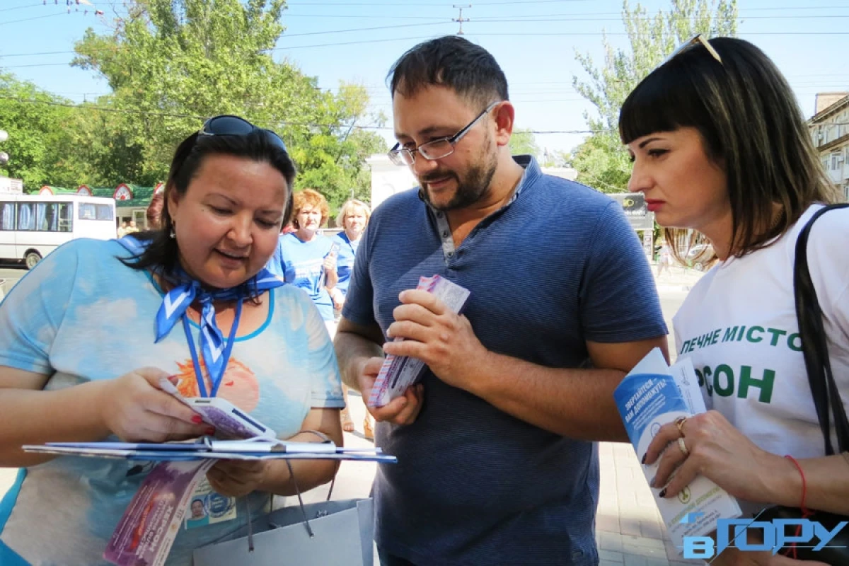 Несмотря на промозглый ветер и моросящий дождь, горожане собрались за полчаса до начала сессии на площади перед мэрией с лозунгами «Мы - за Кризисный центр». И вручали прохожим, в том числе и депутатам, спешащим на заседание, буклеты с логотипом кампании «Херсон, территория свободная от насилия». А часть общественников с аналогичными баннерами и листовками «поджидали» избранников народа непосредственно в зале заседаний.