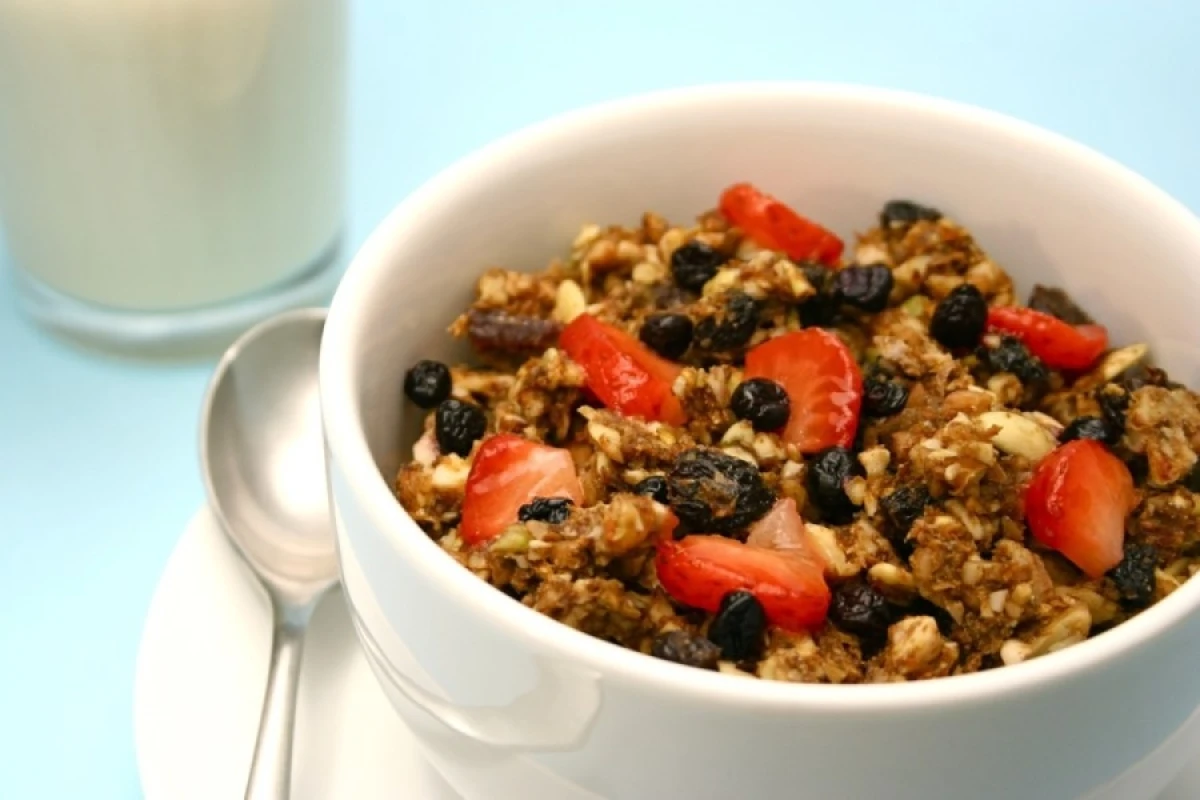 Мюслі. Якщо ви ще не навчилися готувати домашні мюслі, які також називають гранолою, то саме час це виправити. Це чудовий варіант сніданку або перекусу протягом дня, який можна приготувати заздалегідь і зберігати в герметичному контейнері. Як правило, гранолу готують з вівсяних пластівців і інших круп з додаванням горіхів, сухофруктів, цукатів, висівок і інших корисних інгредієнтів. Головне достоїнство граноли — багатий склад. В ній містяться вітаміни групи В, А, Е, мінерали, антиоксиданти, органічні кислоти та ефірні масла. Продукт заряджає енергією, піднімає настрій, знижує рівень шкідливого холестерину, а також нормалізує роботу травної системи, так як крупи, висівки багаті клітковиною.