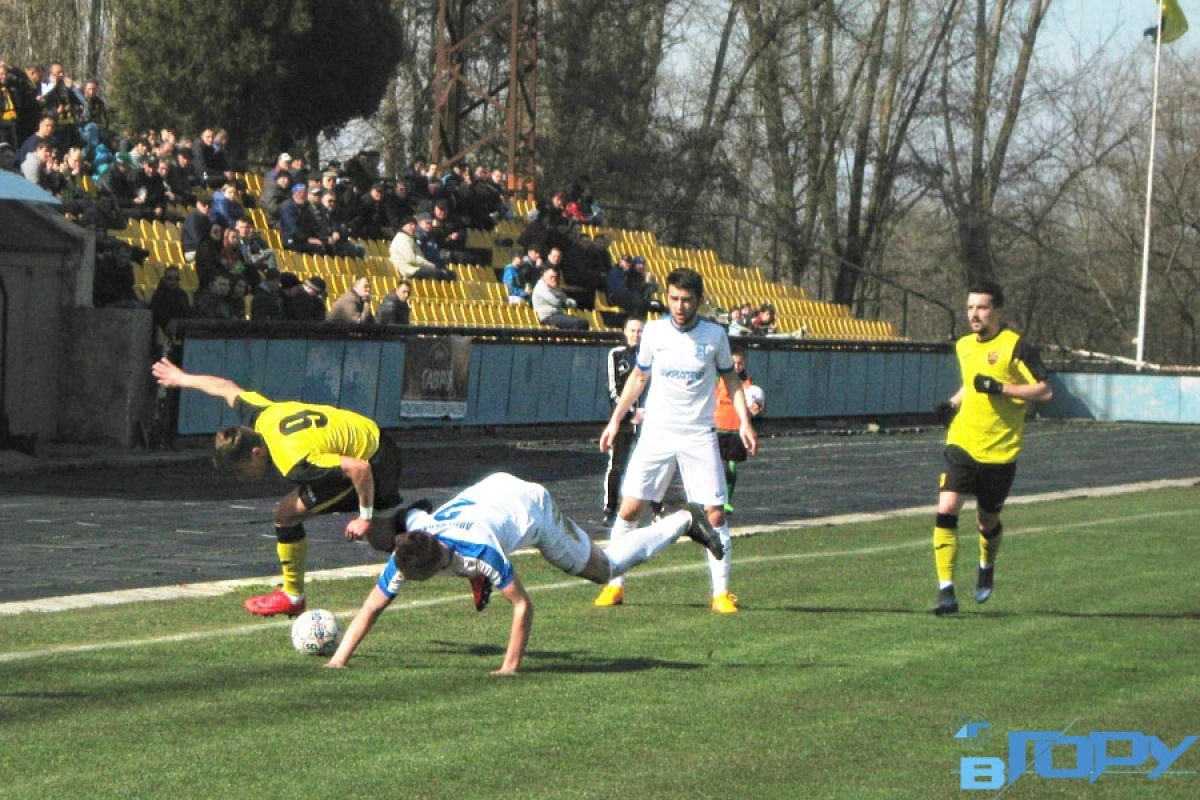 Уже в первом тайме новокаховчане создали много моментов, но гол забили лишь перед самым перерывом. Дедяев вбросил мяч с аута на Михнёва. Тот сделал передачу на Прокипчука. Он нанёс точный удар. 1:0.