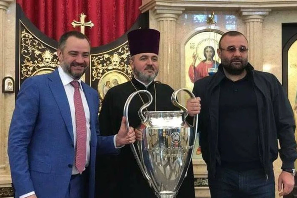 "По центру якийсь піп Київського патріархату, причом тримає Кубок європейських чемпіонів. В місті Дніпро.