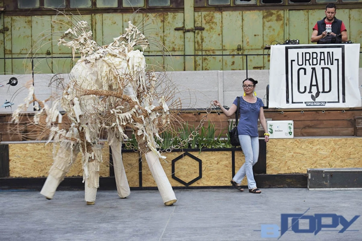 После лектория всех посетителей Urban CADа ждал сюрприз, а именно перфоманс «живая скульптура». Андрей облачился в костюм Дерева, который он создал сам из ткани и лозы и прошел в нем по территории Urban CADа. Все желающее могли сфотографироваться с ним.