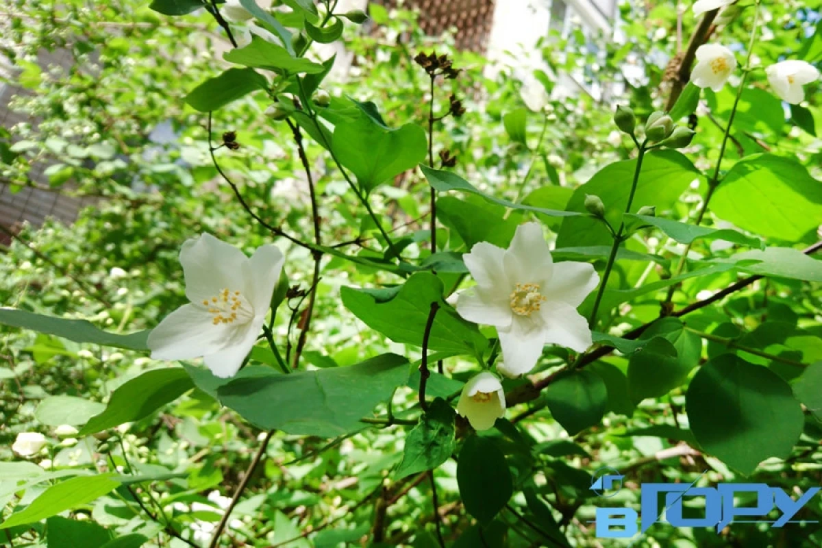 Мы больше привыкли называть его жасмином, но на самом деле это кустарник из семейства гортензиевых.