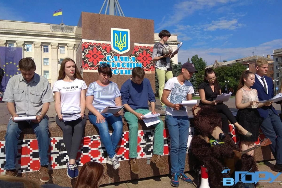 Украинские кинематографисты пришли под российское посольство в Киеве и прочитали пьесу "Помолвка". В этой акции приняли участие известные театральные актеры (сыгравшие в ленте "Киборги" режиссера Ахтема Сеитаблаева, которая признана лучшей в 2017 г. на кинопремии «Золота Дзиґа»: Вячеслав Довженко, Роман Ясиновский и Андрей Исаенко), а также актер Театра на Подоле Александр Фоменко и популярный драматург, сценарист и актер Максим Курочкин.
