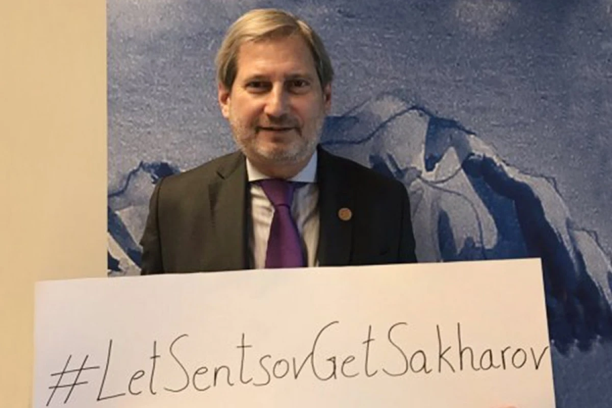 Єврокомісар Йоханнес Хан звернувся до Росії із закликом відпустити українського політв'язня Олега Сенцова на вручення премії Сахарова в Страсбурзі. Про це він написав у своєму Twitter.