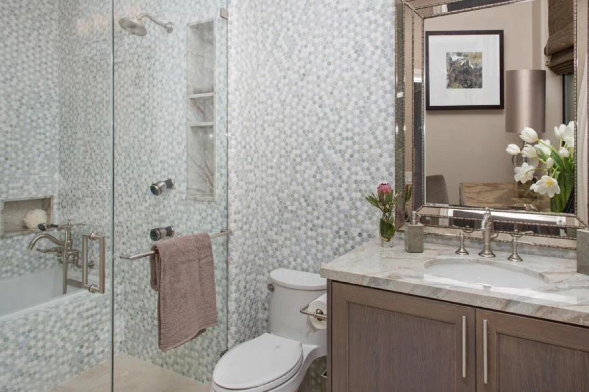 Увагу варто приділити й покриттю стін та підлоги. Воно має відрізнятися. Якщо стіни будуть в одному кольорі, а підлога в іншому, це дозволить візуально розширити простір. Вигідно виглядатиме в маленькій кімнаті візерунчаста плитка. Для підлоги можна обрати з крупним орнаментом, для стін — із дрібним.
