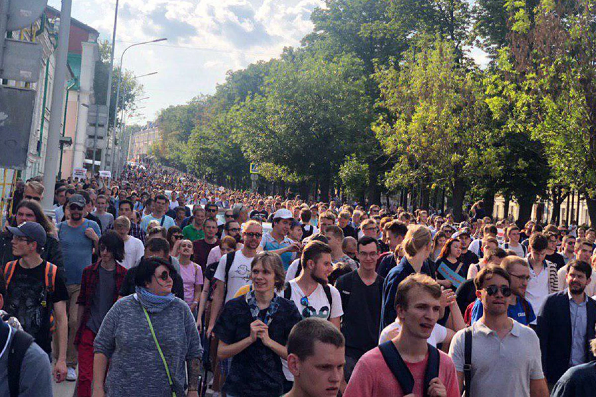 У центрі Москви відбувався несанкціонований мітинг "За чесні вибори" на підтримку незалежних кандидатів на виборах до міської думи, яким відмовили в реєстрації.