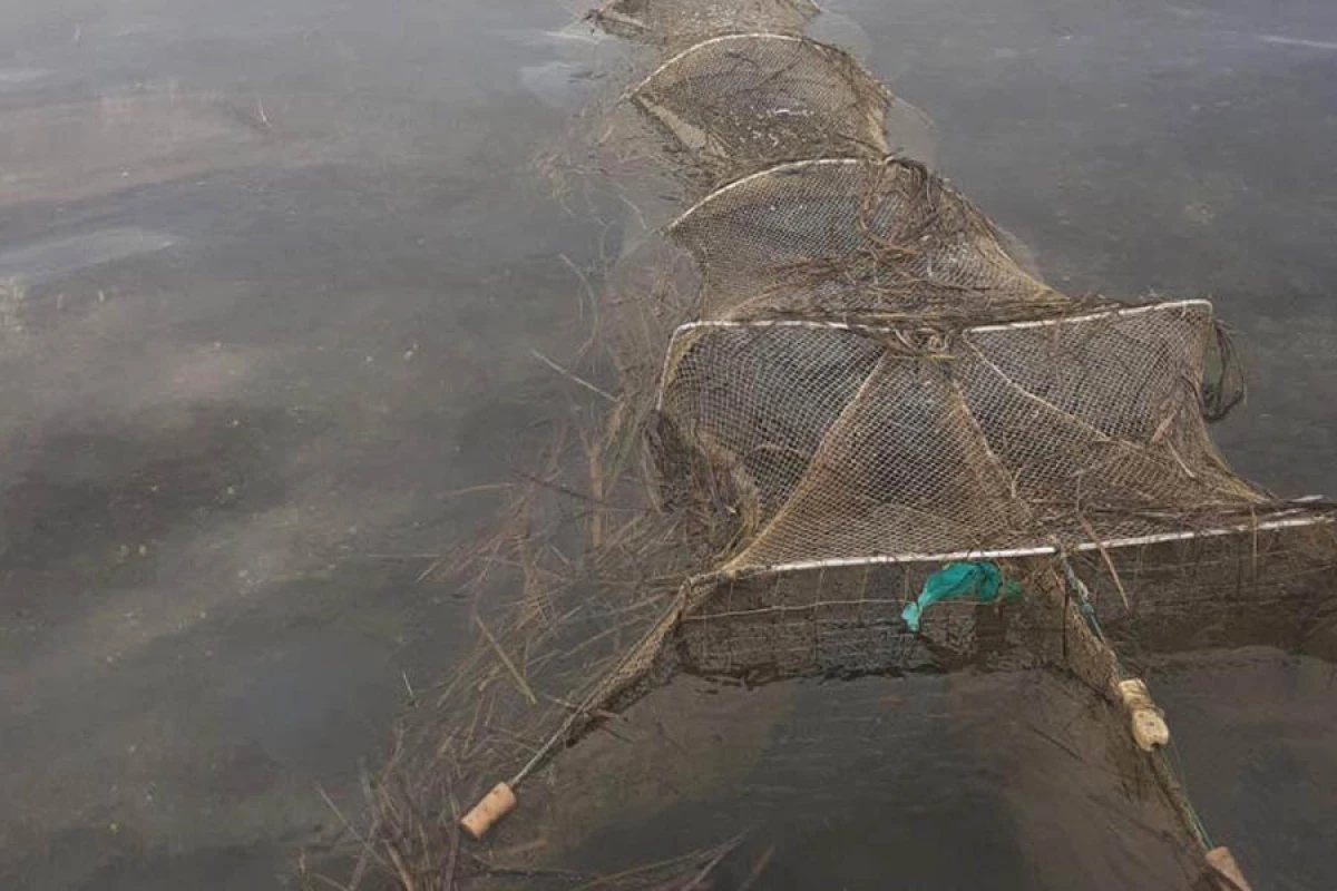 На відстані близько 3 кілометрів від районного центру в Джарилгацькій затоці поліцейські вилучили з води 2 креветочних ятері.