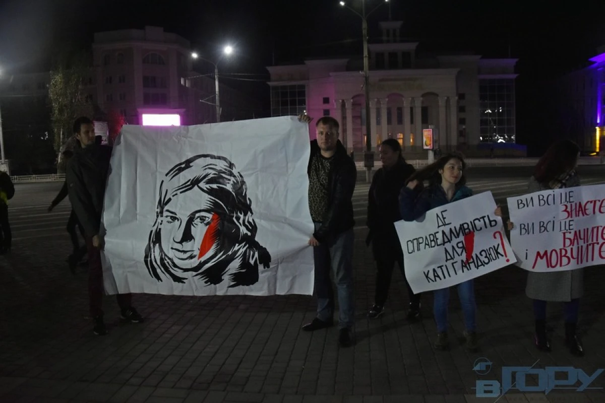 На херсонську акцію «Рік без Каті» вийшли її друзі та громадські активісти. Вони розгорнули банери від ініціативи «Хто замовив Катю Гандзюк» та питанням до президента України Володимира Зеленського.