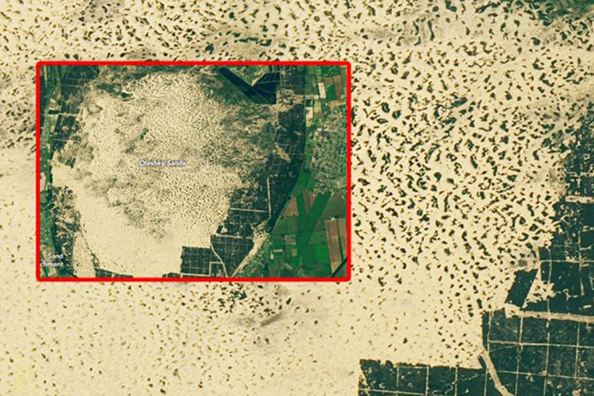 "На північ від Чорного моря ландшафт південної України рясніє привабливими рельєфами. Багато хто задається питанням: що це? Приблизно в 65 кілометрах на північний захід від барвистих лагун Сиваша, ліси різко переходять у піски. Цей овальний регіон на фото, відомий як Олешківські піски, є найбільшою піщаною ареною в Україні і другою за величиною в Європі (площа масиву перевищує 1620 кв. км - ред.)", - йдеться на сайті Національного управління з аеронавтики і дослідженню космічного простору.