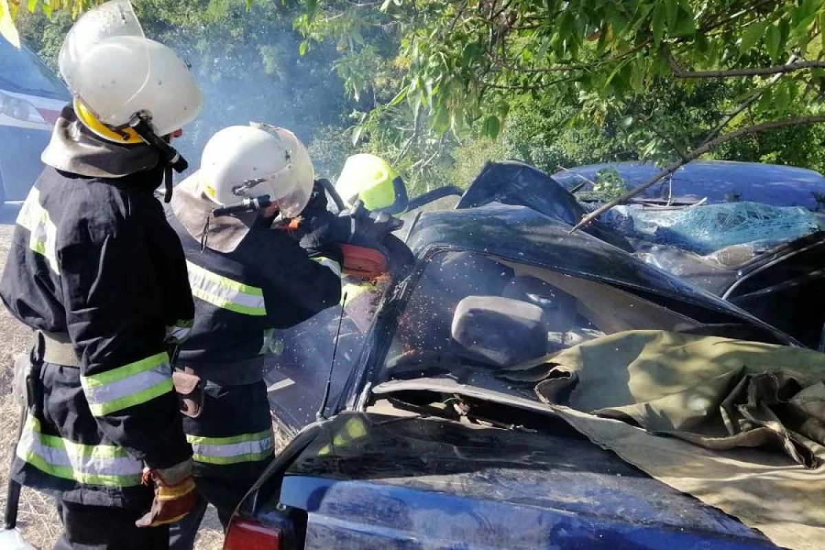 Рятувальники, за допомогою гідравлічних інструментів та підручних засобів, відчинили двері аварійного автомобіля. Водій автомобіля вийшов самостійно. Постраждалі від госпіталізації відмовилися.