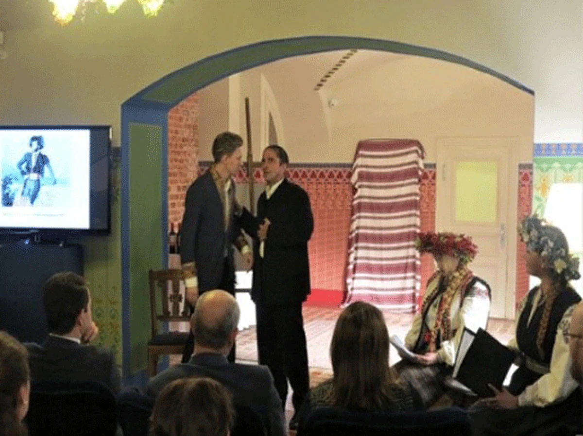Зокрема, були інсценізовані моменти його дружнього спілкування з Миколою Гоголем. Перед глядачами також ніби ожила картина Айвазовського “Українське весілля”. А на завершення постановочної частини вечора відбувся показ автентичних українських народних костюмів (переважно жіночих) з колекції Марії Семенової.
