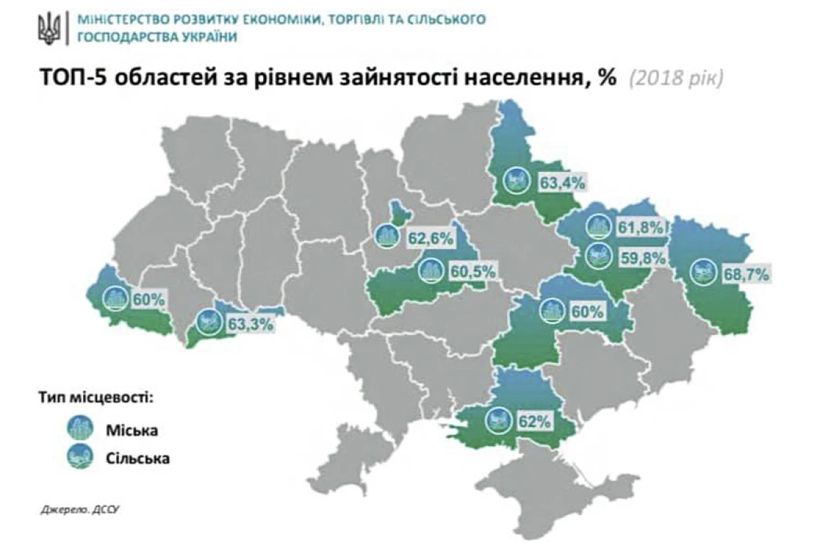 ТОП-5 областей за рівнем зайнятості населення у віці 15-70 років:
