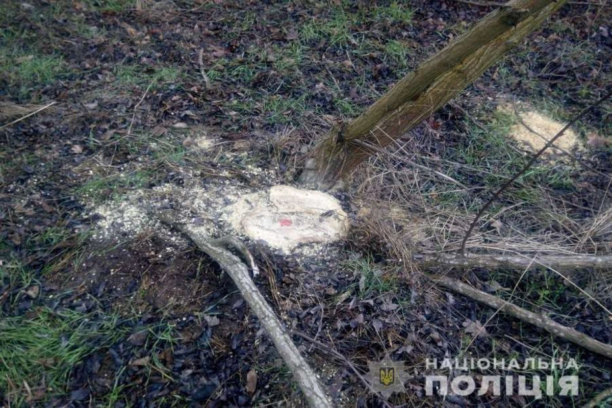Він повідомив, що під час прогулянки з собакою у лісосмузі поблизу селища виявив пеньки від дерев. На місці події поліцейські зафіксували факт незаконного спилювання 10 дерев білої акації. Наразі встановлюється сума збитків завдана лісовому господарству.