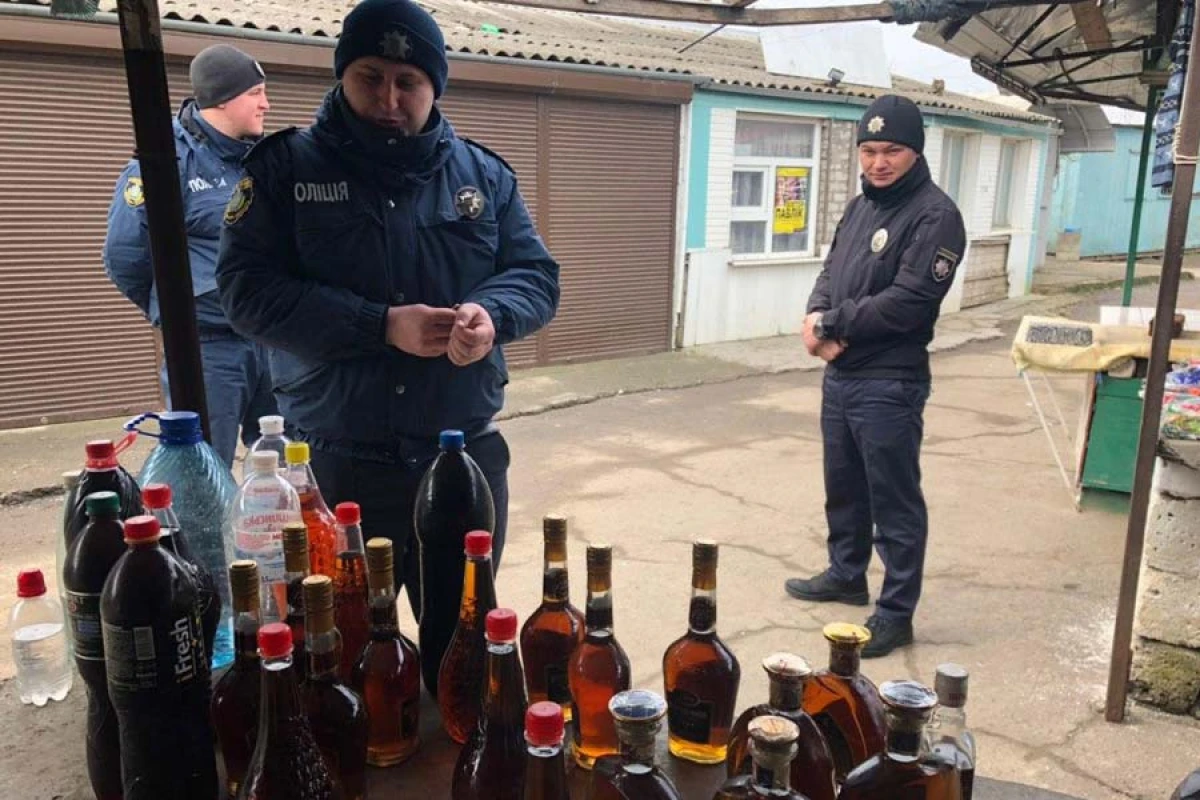 Поліцейські розділилися на дві групи. Дільничні офіцери поліції зайшли в ринок з головного входу, а працівники сектору реагування – з другорядного. Ефект несподіванки спрацював і поліцейські загалом виявили та вилучили понад 60 літрів саморобних коньяку, горілки та вина. Наразі збираються необхідні матеріали для притягнення правопорушників до відповідальності.