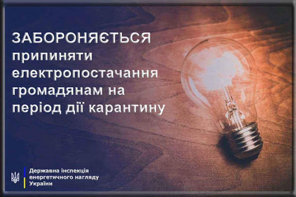 Держенергонагляд звернувся до операторів систем розподілу електричної енергії й електропостачальних організацій та наголосив на необхідності дотримання вимог законодавства і відповідно до нього не обмежувати та/або не припиняти постачання електричної енергії споживачам на період дії карантину.