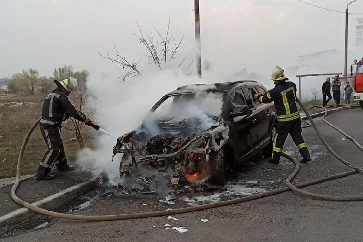 У п'ятницю, 10 квітня, о 18:25 на номер Служби «101» м. Херсона надійшла інформація про те, що вул. Дорофеєва біля під’їзду багатоповерхівки сталось займання припаркованого тут автомобіля AUDI.