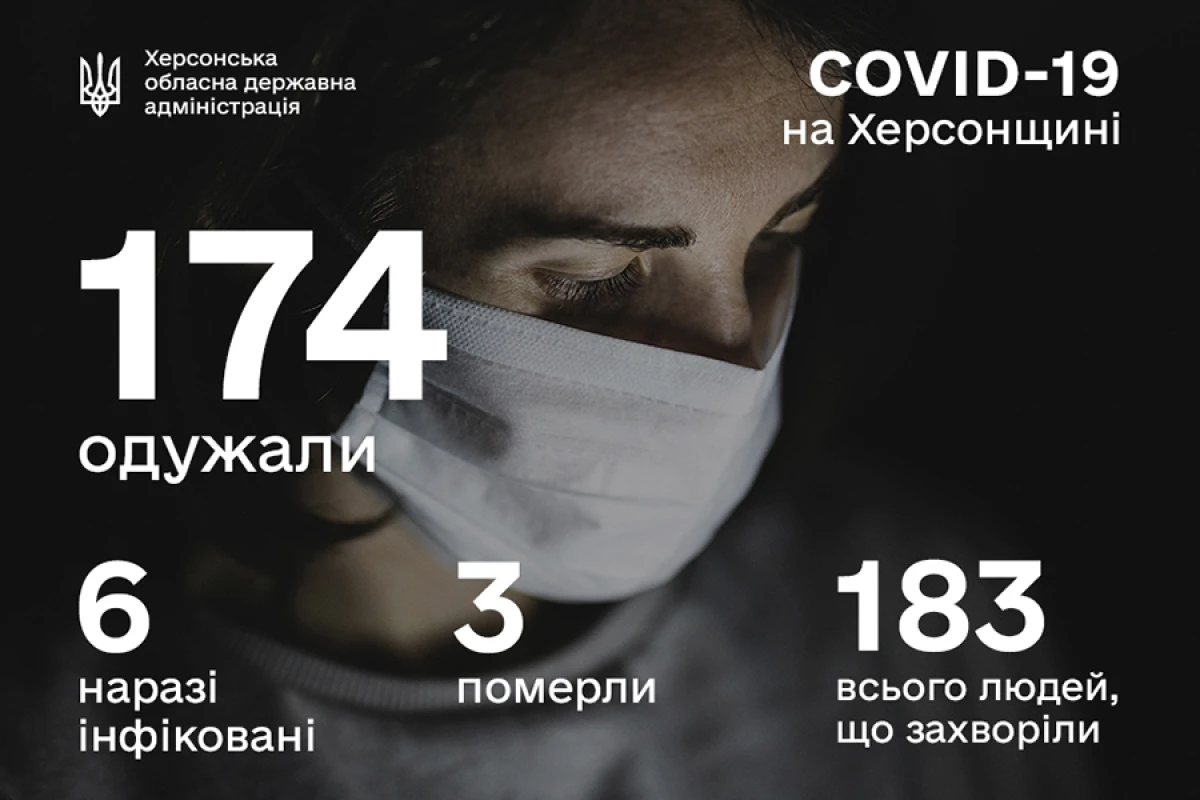 Наразі на Херсонщині хворіє 6 осіб, 174 вже одужало і 3 померли.