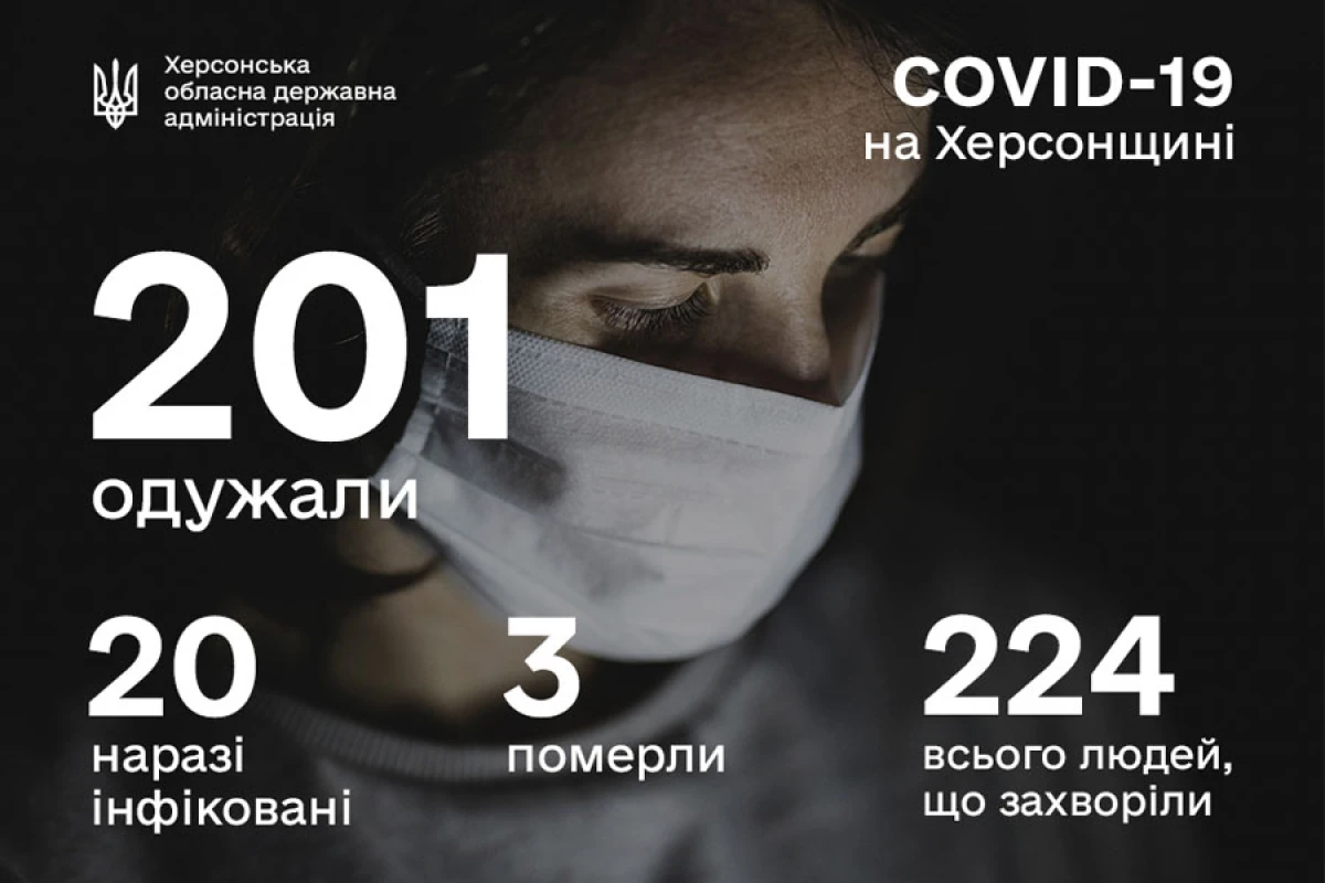 Наразі на Херсонщині хворіє 20 осіб, 201 вже одужала і 3 померли.