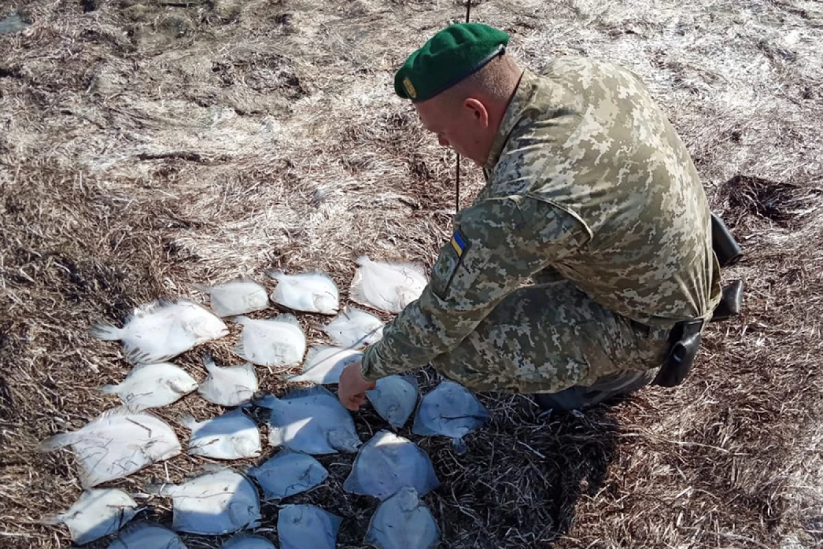 Поблизу населеного пункту Азовське під час патрулювання узбережжя Утлюкського лиману прикордонники Херсонського загону відділення «Генічеськ» виявили громадянина України, який забороненим колючим знаряддям лову спіймав 23 рибин камбали-калкана, чим завдав збитку державі на 19550 гривень.