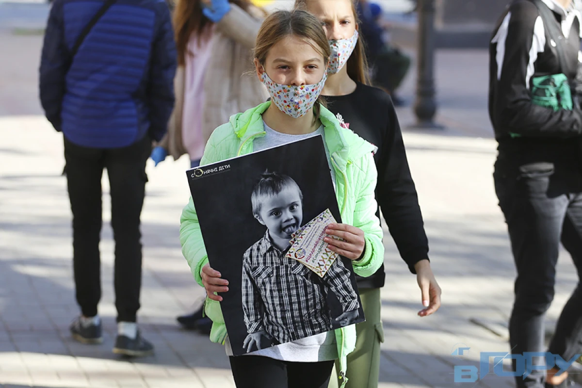 Жовтень - місяць обізнаності про синдром Дауна. Учні та вчителі провели акцію “Синдром сонця” на вулиці Суворова.