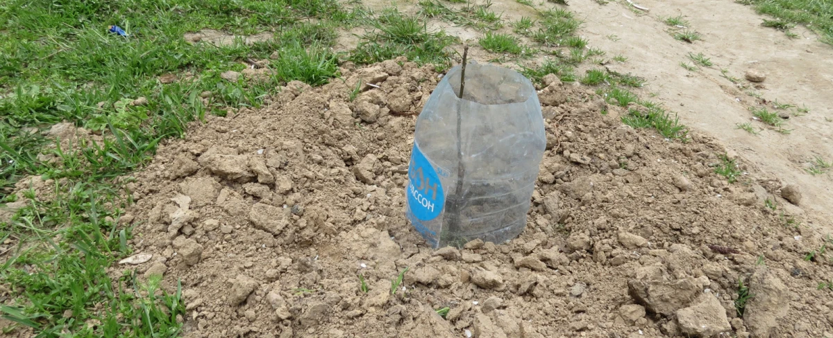Житель Шуменського мікрорайону Херсона Микола Олександрович розповідає, що кожну весну намагається висадити у дворі свого будинку до півтора десятків саджанців. Він стверджує, що рослина, яку помістили у пластикову тару, набагато краще приживається, бо захищена від вітрів, вологи і холоду. Щоправда, пояснює "дворовий садівник", все ж не всі деревця, на жаль, у результаті виживають: нерідко навколишні вандали в безглуздому пориві агресії деформують пляшки і викорчовують саджанці.