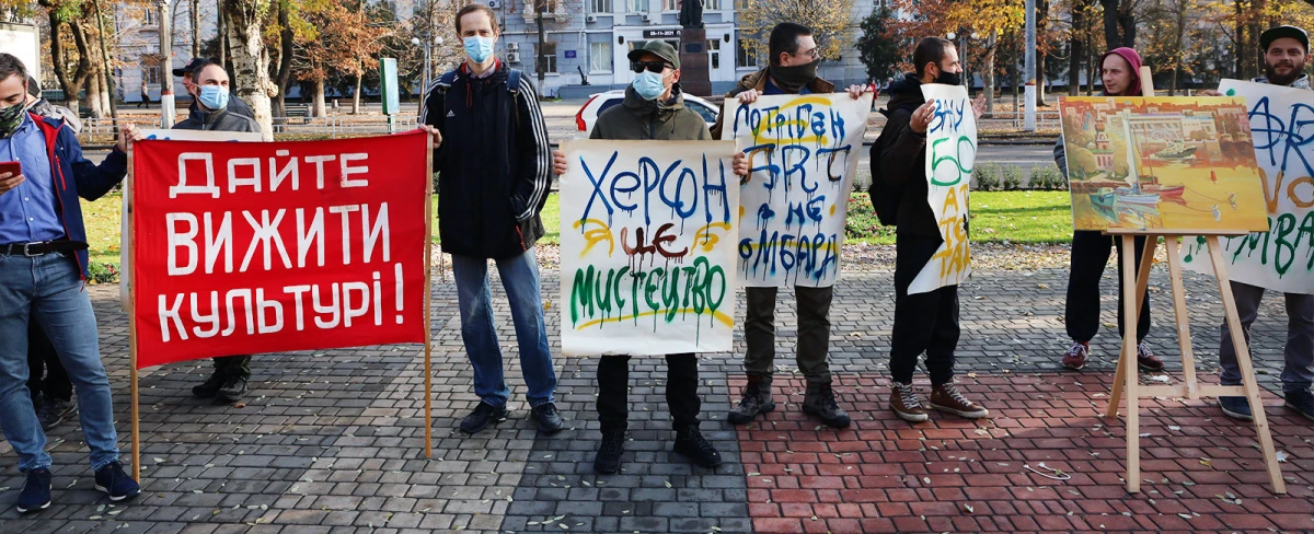 Сьогодні вранці, 5 листопада, художники та небайдужі містяни зібралися під стінами Херсонської міськради на мітинг з вимогою не допустити продажу виставкової зали.