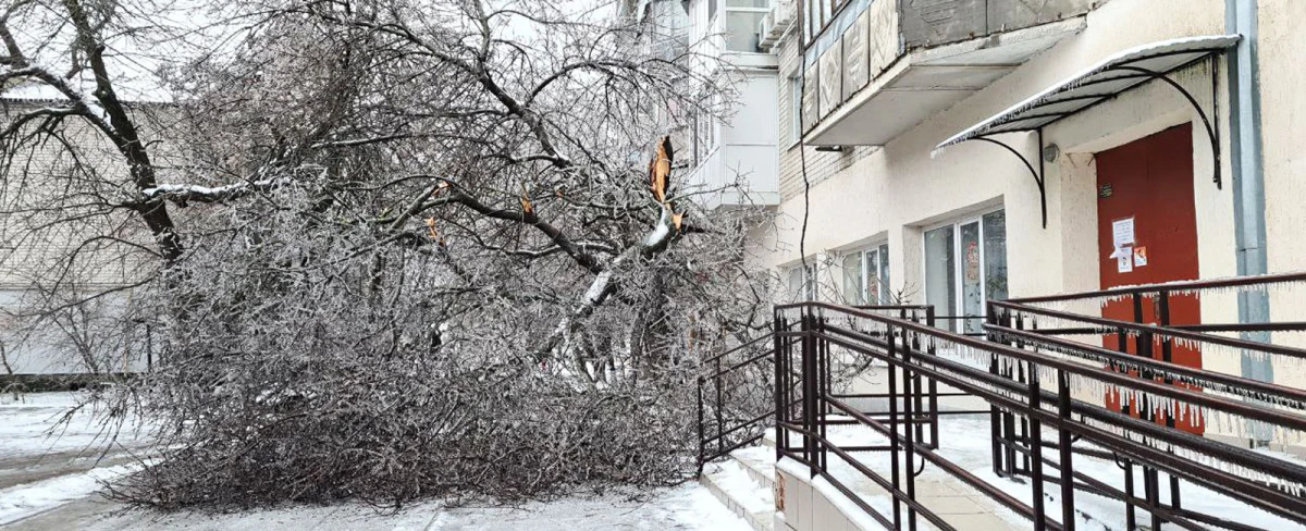 По вулиці Арктичній навпроти входу в молодіжний центр "Молодіжка" та бібліотеку-філію №3 міста Херсона через негоду та зледеніння надломилося дерево, яке перекрило проїзд по односторонній проїзній частині дороги та прохід пішоходів по тротуару.