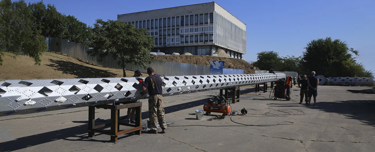 Не минуло й пів року після падіння недомонтованого “найбільшого флагштока”, як у Херсоні вирішили спорудити нову 70-метрову конструкцію вартістю близько 19 мільйонів гривень. Відповідний тендер на Prozorro оголосила Установа "Агенція регіонального розвитку "Офіс євроінтеграції" Херсонської області".
