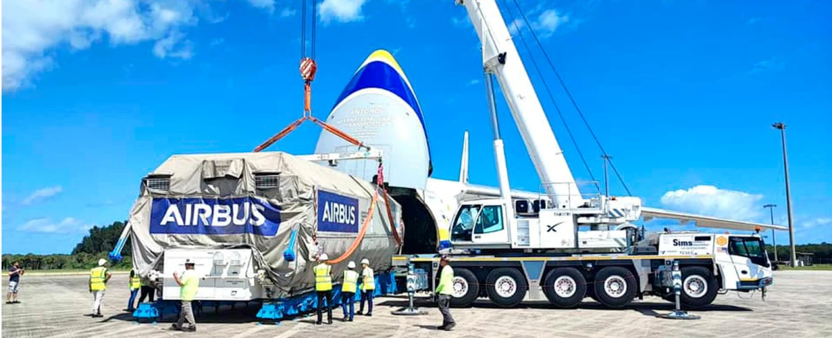 Вага вантажу склала 50 тонн, включаючи спеціальний контейнер, розроблений Airbus Defense and Space для безпечного переміщення супутників.