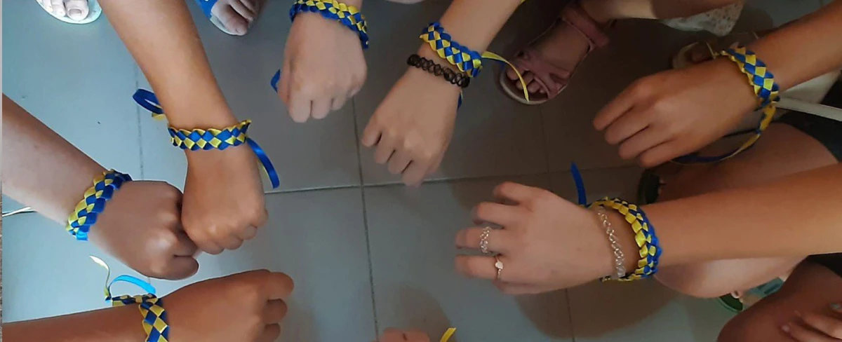 Як зазначають у дописі, під час плетіння браслетів діти використовували жовті та блакитні стрічки, що символізують кольори українського прапора. Свої вироби учасники майстер-класу планують дарувати рідним та військовим.