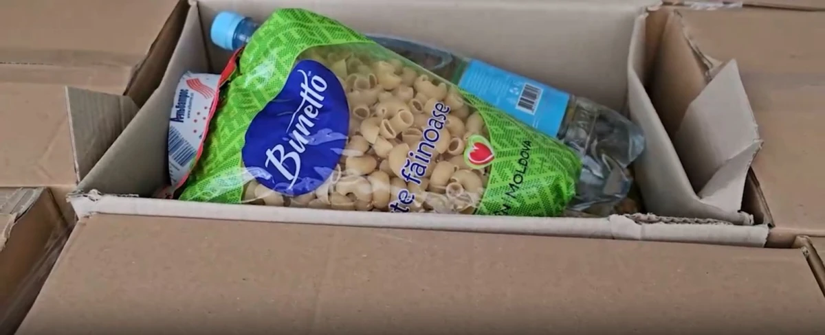 Вантаж складається із півтори тисячі коробок із пшеничною та перловою крупами, борошном, макаронами, вівсяними пластівцями, горохом, олією, сіллю та паштетами, ідеться в дописі.