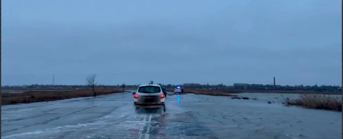 У результаті зливи, нібито, підтоплена ділянка дороги між окупованим Генічеськом та Арабатською стрілкою.