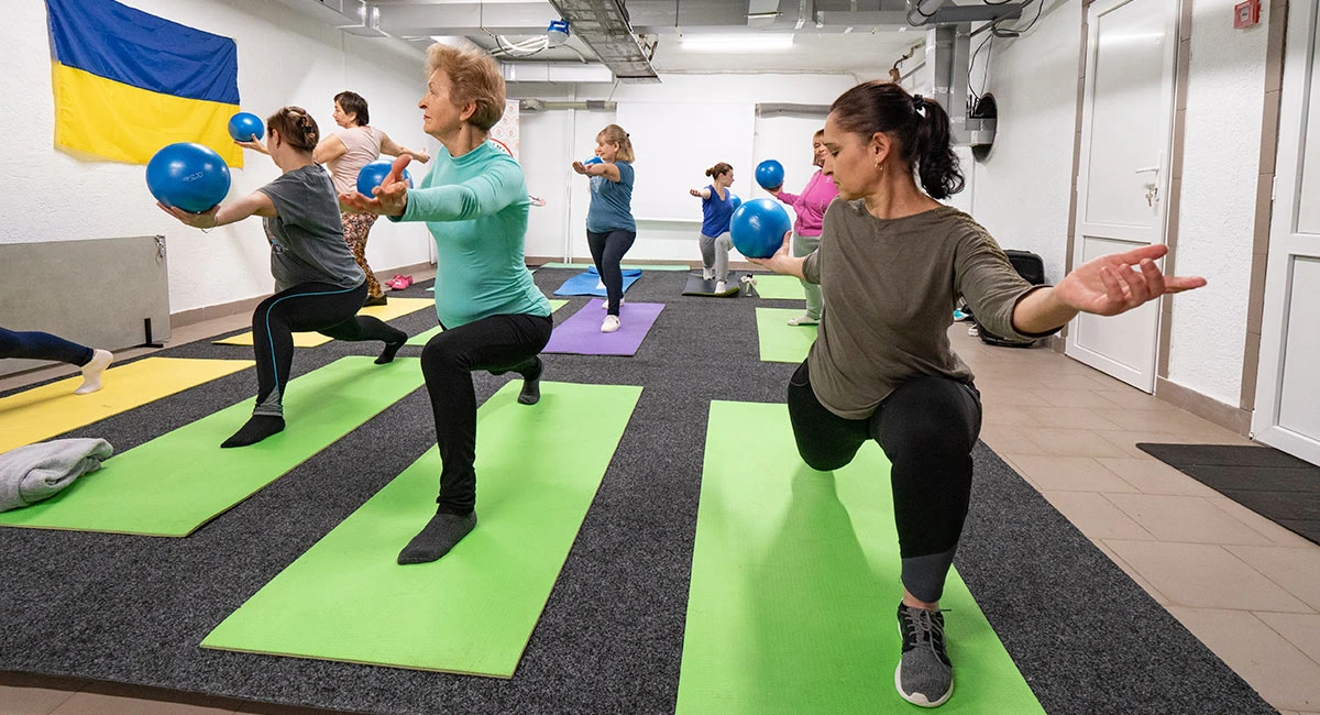 Також вона сказала, що вправи не тільки корисні, а й допомагають відвернути увагу від щоденних обстрілів і психоемоційно розвантажитися.
