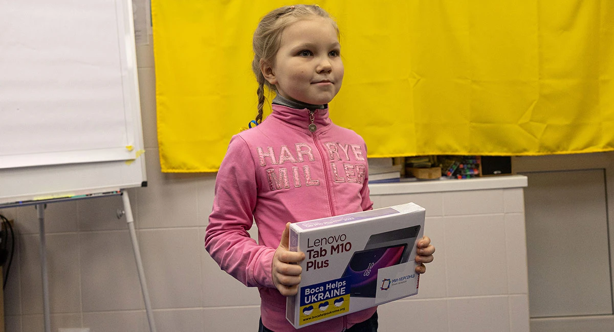 Вона повідомила, що гаджети отримали діти багатодітних і малозабезпечених категорій. Також вирішили передати планшети для дітей волонтерів із Херсона та Антонівки.