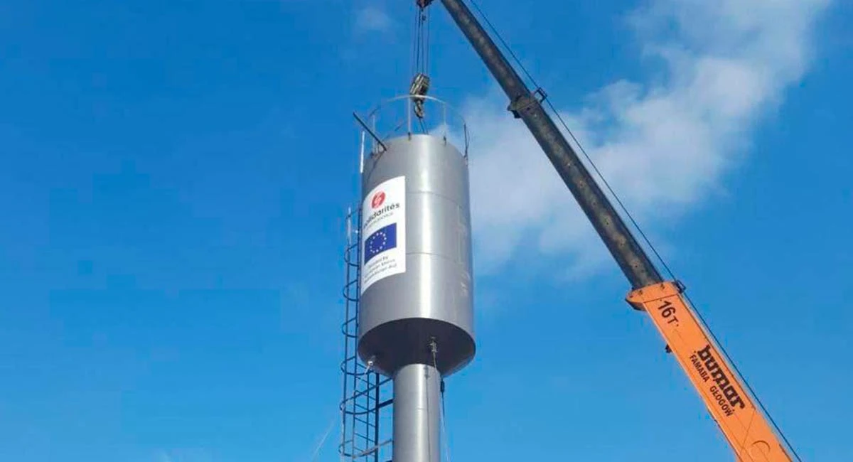 Зазначається, що допомогли встановити водонапірну башту волонтери неурядової гуманітарної організації Solidarites International.