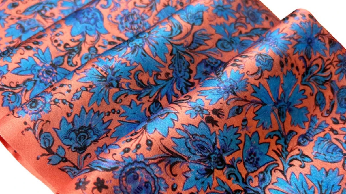 На твіллі (видовжена двостороння хустка, котру можна вдягати як хустку на шию, краватку, пояс, ремінь, прикрасу для волосся тощо) зобразили декоративний розписЛюдмили Петрової “Волошки”, – повідомили музейники.