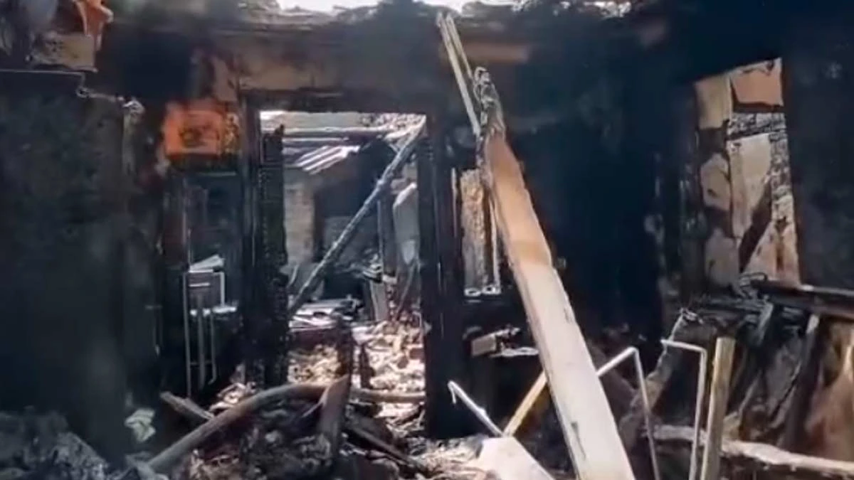 На відео видно, що один із будинків вигорів у середині. Також пошкоджені дахи, вікна, двері та паркани.