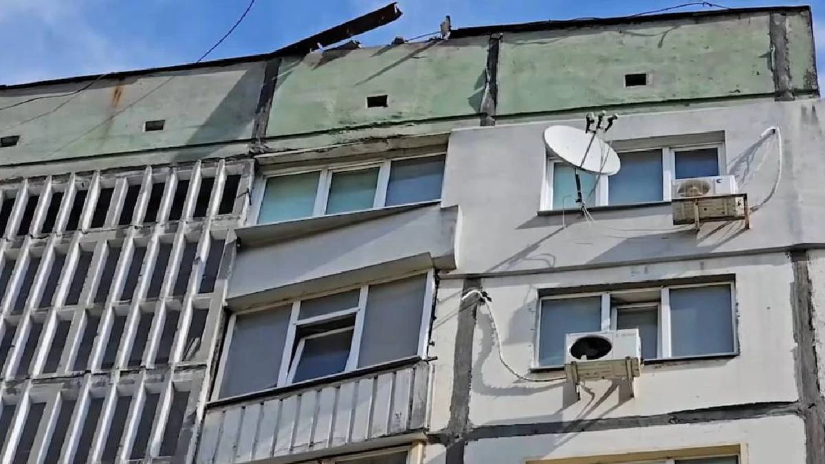Через пряме влучання в будівлі пошкоджений дах, сходи, ліфтове обладнання та вибиті шибки.