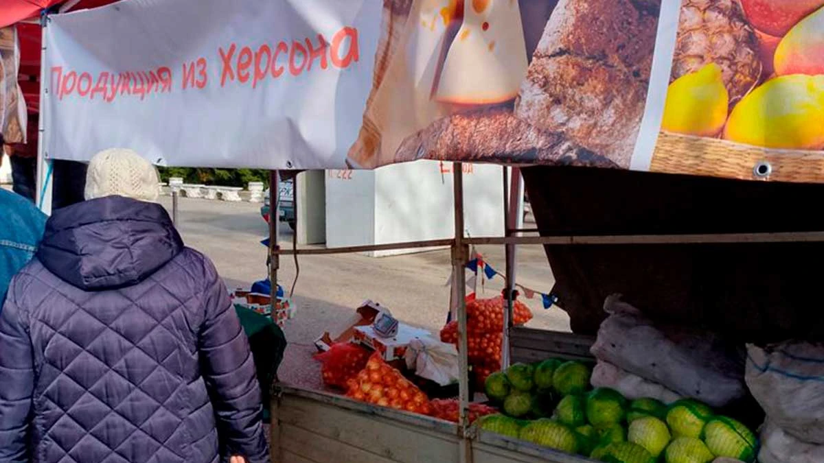 В окупованому Севастополі відкрилися новорічні продуктові ярмарки з українською продукцією. На одному з лотків встановили вивіску «Продукція з Херсона».
