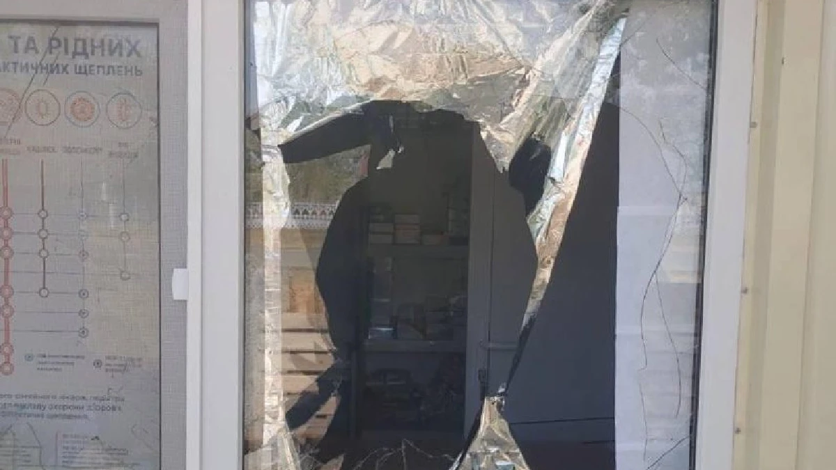 Зазначається, що у будівлі пошкоджено фасад та вікно.