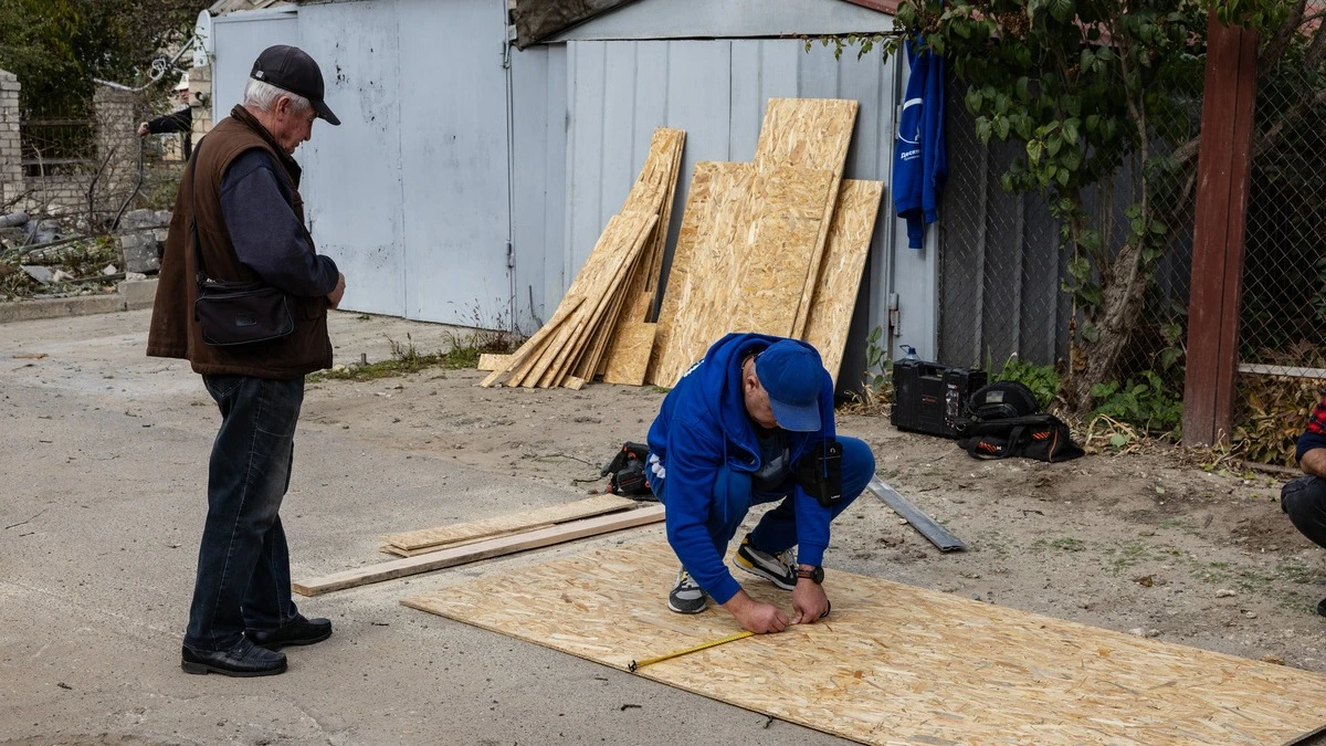 - Громадські організації: «Мирне небо Харкова», «Місто сили», «Сильні, бо вільні», «10 квітня». Вони надають не лише робочі руки, а й матеріали: OSB-листи, плівку та тарпаулін для дахів.