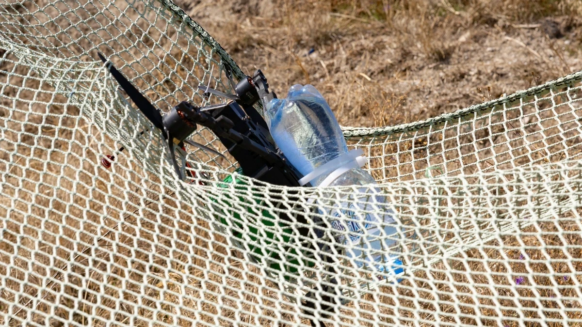 - Перш ніж розміщувати сітки на ділянках Херсонщини, їхні зразки доставляють на полігон, де військові відпрацьовують по них дронами, використовуючи різні типи боєприпасів.