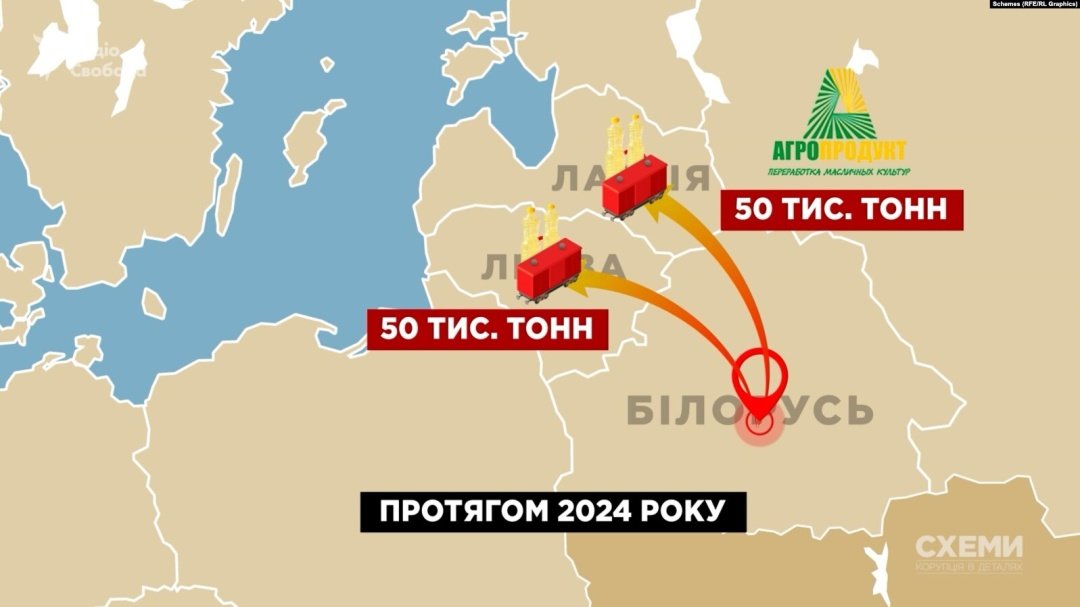 За інформацією білоруської опозиційної організації "Співтовариство залізничників Білорусі", ці країни протягом усього 2024 року отримали приблизно по 50 тисяч тонн ріпакової олії виключно від "Агропродукту".